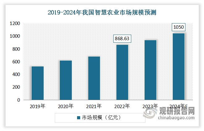 近年得益于我国全方位政策盈利支撑、财务投入不竭添加,我国聪慧农业市场快速成长。数据显示,同比增加约26。81%。估计到2024年我国聪慧农业市场规模达到到1050亿元。