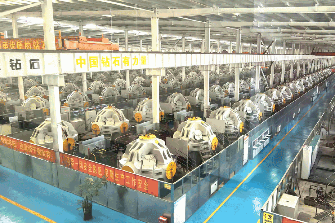 我正在力量钻石的出产车间看到,有600台六面顶压机正正在运转,这是全世界规模最大的培育钻石车间。因为高度从动化、智能化,车间里只要不到10个工人。
