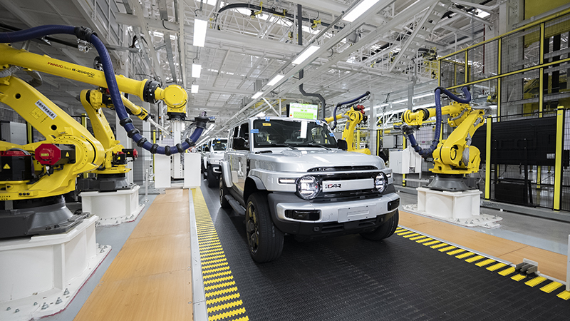 新年伊始,走进奇瑞新能源iCAR工场,劈面而来的,是一派忙碌的工做场景。一排排机械臂挥舞忙碌,正在这里,拆卸、检测、下线速度按秒计较;仍是正在芜湖市弋江区,安徽舟之航电池无限公司4号工场里,AGV小车来回穿越,不知怠倦地忙着运料,一旁的镍片焊接机也开脚马力,赶制定单。做为芜湖新能源汽车财产焦点区的所正在地,近年来,弋江区抢抓新能源汽车成长“风口”,因势而谋、应势而动,结构新能源汽车新赛道,帮力全市汽车财产高质量成长。2024年11月15日,奇瑞iCAR V23正在广州车展一经预售,几乎爆单,仅7天时间,订单就冲破了3万辆。“2024年12月2日,第一品车正式下线日,第一批车上市并同步交付。”细数起iCAR V23的时间轴,奇瑞新能源研发院院长帮理张凯如数家珍。正在他眼里,iCAR V23是奇瑞新能源打制的一款电动越野新星。iCAR工场共计3。9万平方米,正在这里,看不到人员稠密的产线多辆AMR智能物流小车、4个从动拆卸岛,以及底盘合拆坐、从动检测坐。“和保守汽车产线比拟,从动化是我们的一大亮点,风挡、底盘、座椅、轮胎全数都是机械人从动化拆卸,大大节流了人力,提高了效率。”张凯如是说。他以风挡玻璃安拆为例,9台工业机械人同步启动,从动取件、从动打胶、从动洁净、从动拆卸,功课的节奏数能够达到1分钟一台车。值得一提的是,得益于从动化率的提高,平均1分半钟能够下线一台车。目前,iCAR V23已批量出产,正处于爬产过程,满负荷形态下,每60秒下线一台车。